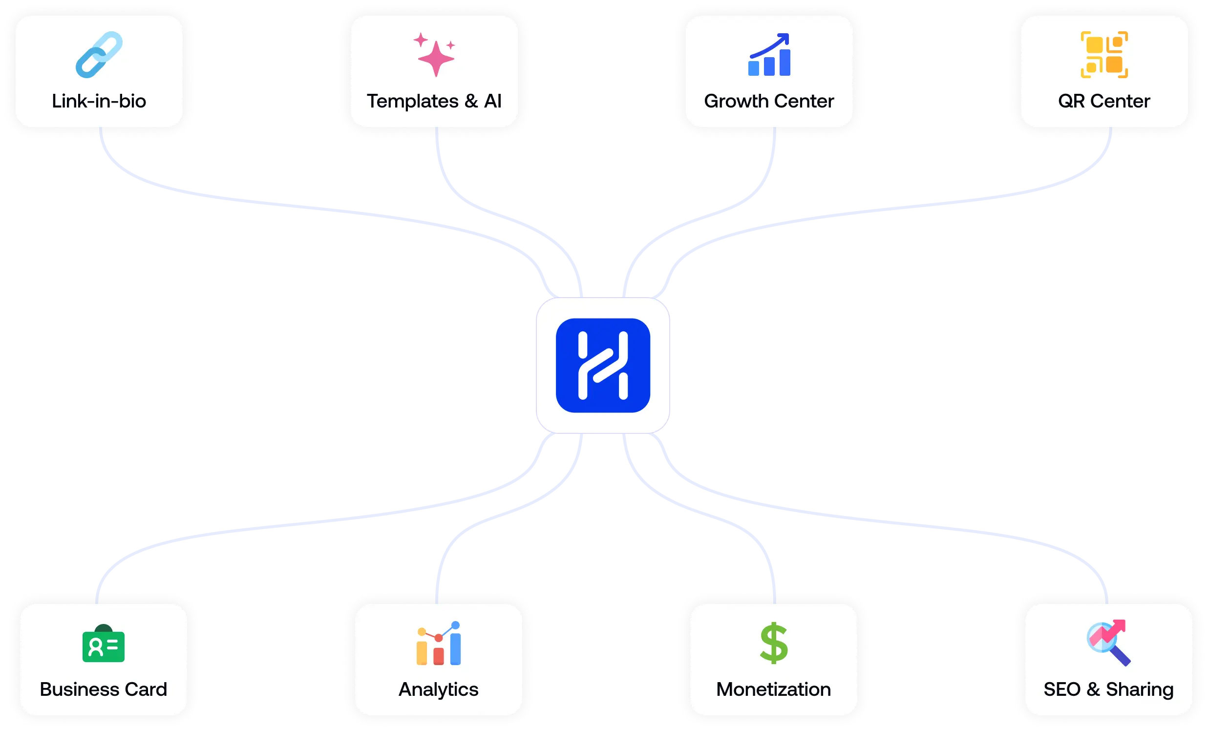 Link-in-Bio, AI, Templates, QR, Analytics, Monetization — all in one modern platform designed for creators and brands.